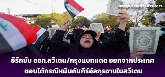 สนข. Reuters รายงานเมื่อ 20 ก.ค.66 อ้าง สนข. INA ของทางการอิรัก และถ้อยแถลงสำนักนายกรัฐมนตรีของอิรัก ว่า ในวันเดียวกันนี้ นายมุฮัมมัด ชีอะห์ อัลซูดานี นรม.อิรัก มีคำสั่งเรียกอุปทูตอิรัก ประจำ สอท.อิรัก/กรุงสตอกโฮล์ม สวีเดน กลับประเทศ และขับ ออท.สวีเดน/กรุงแบกแดด ออกจากอิรัก รวมถึงระงับใบอนุญาตทำงานในอิรักของบริษัท Ericsson ซึ่งเป็นบริษัทโทรคมนาคมรายใหญ่ของสวีเดน เพื่อตอบโต้กรณีทางการสวีเดนอนุญาตให้กลุ่มต่อต้านศาสนาอิสลาม ชุมนุมประท้วงหน้า สอท.อิรัก/กรุงสตอกโฮล์ม ในวันเดียวกัน โดยกลุ่มผู้ประท้วงแสดงพฤติกรรมดูหมิ่นด้วยการกระทืบและเตะคัมภีร์อัลกุรอาน แต่ไม่ได้จุดไฟเผาตามที่กลุ่มประกาศว่าจะก่อเหตุเช่นเดียวกับนาย Salwan Momika ผู้ลี้ภัยชาวอิรักในสวีเดนซึ่งเป็นสมาชิกกลุ่มดังกล่าว ก่อเหตุจุดไฟเผาคัมภีร์อัลกุรอาน หน้า สอท.อิรัก/กรุงสตอกโฮล์ม เมื่อ 28 มิ.ย.66 ขณะเดียวกัน นรม.อิรัก ยังประณามเหตุชาวอิรักหลายร้อยคนซึ่งสนับสนุนนาย Muqtada al-Sadr นักการศาสนาและนักการเมืองชาวอิรักนิกายชีอะฮ์ บุกเผา สอท.สวีเดน/กรุงแบกแดด เพื่อแสดงความไม่พอใจและประท้วงต่อต้านการเผาคัมภีร์อัลกุรอานในสวีเดน พร้อมระบุว่า รัฐบาลอิรักได้แจ้งรัฐบาลสวีเดนอย่างเป็นทางการถึงความจำเป็นที่อิรักอาจจะตัดสัมพันธ์ทางการทูตกับสวีเดน หากรัฐบาลสวีเดนยังอนุญาตให้เกิดการประท้วงต่อต้านศาสนาอิสลามด้วยการเผาคัมภีร์อัลกุรอานอีก