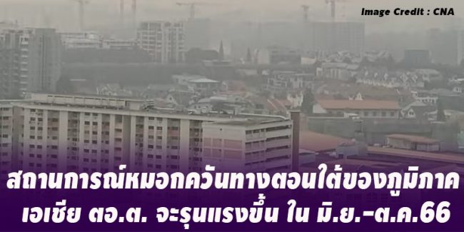 เว็บไซต์ Channel News Asia รายงานเมื่อ 29 พ.ค.66 อ้างรายงาน Start of Dry Season in the Southern ASEAN Region ของศูนย์เชี่ยวชาญด้านอุตุนิยมวิทยาแห่งอาเซียน (ASEAN Specialised Meteorological Centre – ASMC) ว่า สถานการณ์หมอกควันทางตอนใต้ของภูมิภาคเอเชียตะวันออกเฉียงใต้ (พื้นที่ส่วนใหญ่ของบรูไน อินโดนีเซีย มาเลเซีย สิงคโปร์ และภาคใต้ของไทย) จะรุนแรงขึ้น ในห้วง มิ.ย. – ต.ค.66 ซึ่งเป็นผลมาจากปรากฏการณ์เอลนีโญ และจุดความร้อน (hotspot) ที่มีแนวโน้มเพิ่มขึ้น ทั้งนี้ ASMC แนะนำให้มีการวางมาตรการป้องกันล่วงหน้าที่เหมาะสม เพื่อลดผลกระทบจากการเกิดไฟป่าและปัญหาหมอกควันข้ามแดนในภูมิภาค