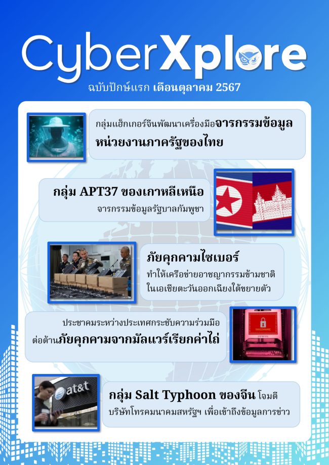 CyberXplore ฉบับปักษ์แรกเดือนตุลาคม 2567 รายงานสถานการณ์ไซเบอร์รอบโลก รายปักษ์ ทุก 15 วัน