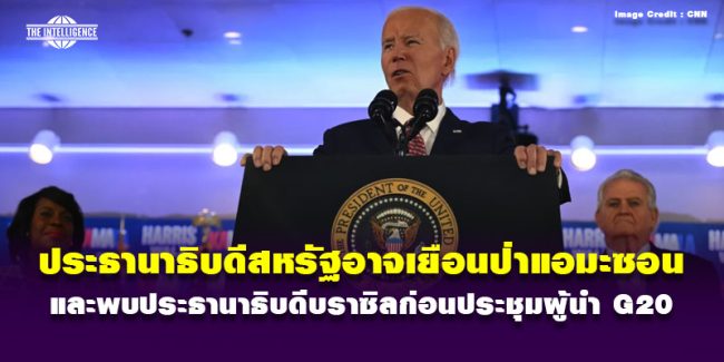 ประธานาธิบดีโจเซฟ ไบเดน ของสหรัฐฯ อาจเยือนป่าฝนแอมะซอน และพบหารือกับประธานาธิบดี Luis Inacio Lula da Silva ของบราซิล ก่อนที่ทั้งสองฝ่ายจะเข้าร่วมการประชุมผู้นำ G20 ที่บราซิลเป็นเจ้าภาพระหว่าง 18-19 พ.ย.67 โดยประธานาธิบดีสหรัฐฯ อาจเยี่ยมชมบริเวณปากแม่น้ำแอมะซอนห้วง 16 -17 พ.ย.67 หลังเสร็จสิ้นการประชุมผู้นำกลุ่มความร่วมมือทางเศรษฐกิจเอเชีย -แปซิฟิก ( APEC) ที่เปรูจะเป็นเจ้าภาพระหว่าง 10-16 พ.ย.67