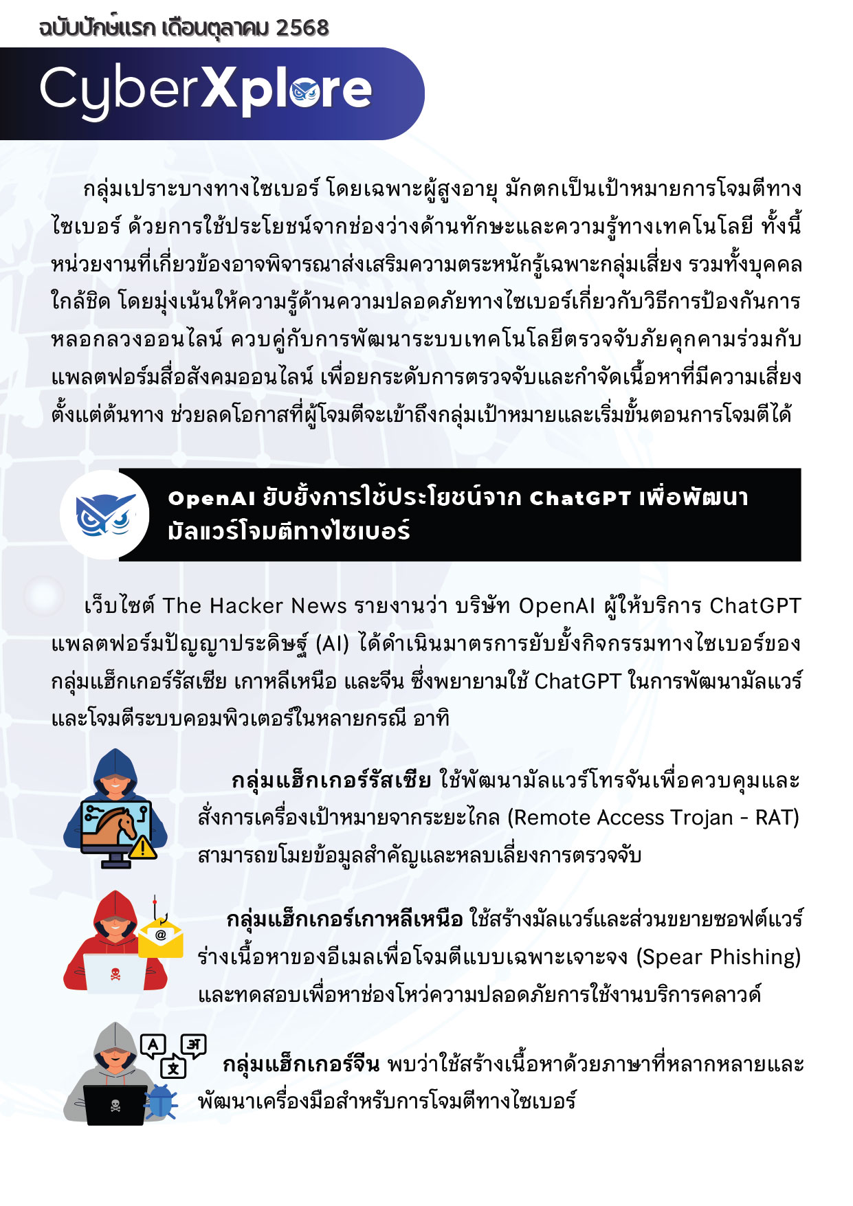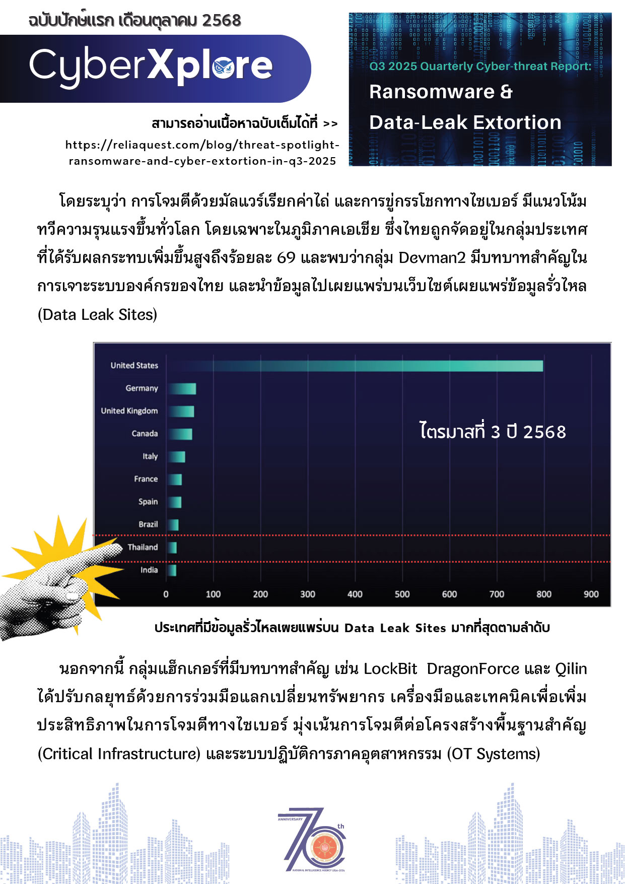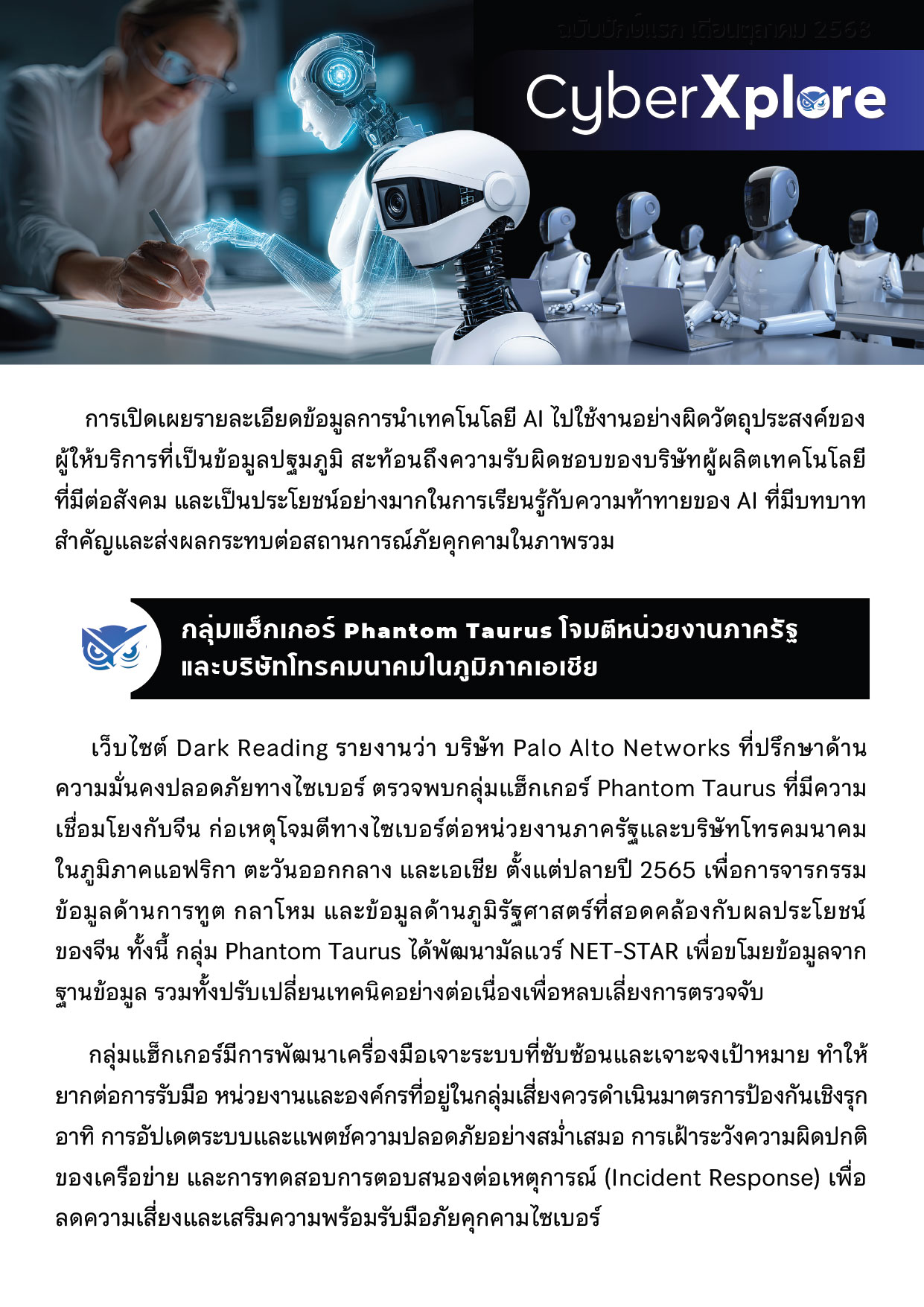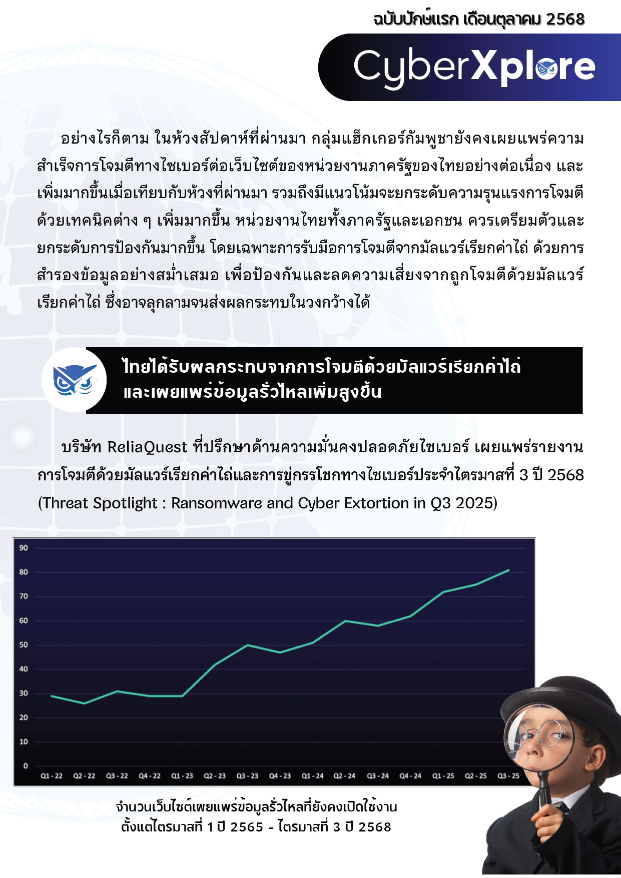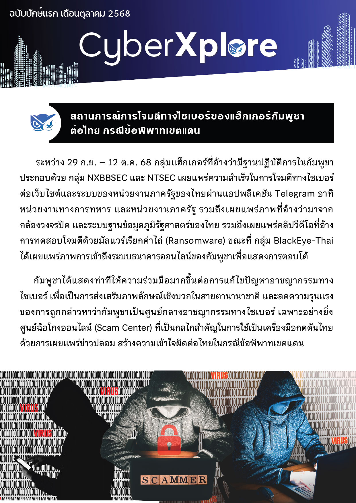 Category: CyberXploreBy The Intelligence Team15 October 2025 Share this post Share on FacebookShare on Facebook Share on XShare on X Pin itShare on Pinterest Share on LinkedInShare on LinkedIn Author: The Intelligence Team https://intsharing.co/ Post navigationPreviousPrevious post:AI กำลังเปลี่ยนโลก… แล้วอาเซียนพร้อมหรือยัง?NextNext post:Global Gaze ปักษ์แรก ต.ค.68Related postsCyberXplore ปักษ์หลัง ก.ย.256830 September 2025CyberXplore ปักษ์แรก ก.ย.256816 September 2025CyberXplore ปักษ์หลัง ส.ค.256831 August 2025CyberXplore ปักษ์แรก ส.ค.256815 August 2025CyberXplore ปักษ์หลัง ก.ค.256831 July 2025CyberXplore ปักษ์แรก ก.ค.256815 July 2025