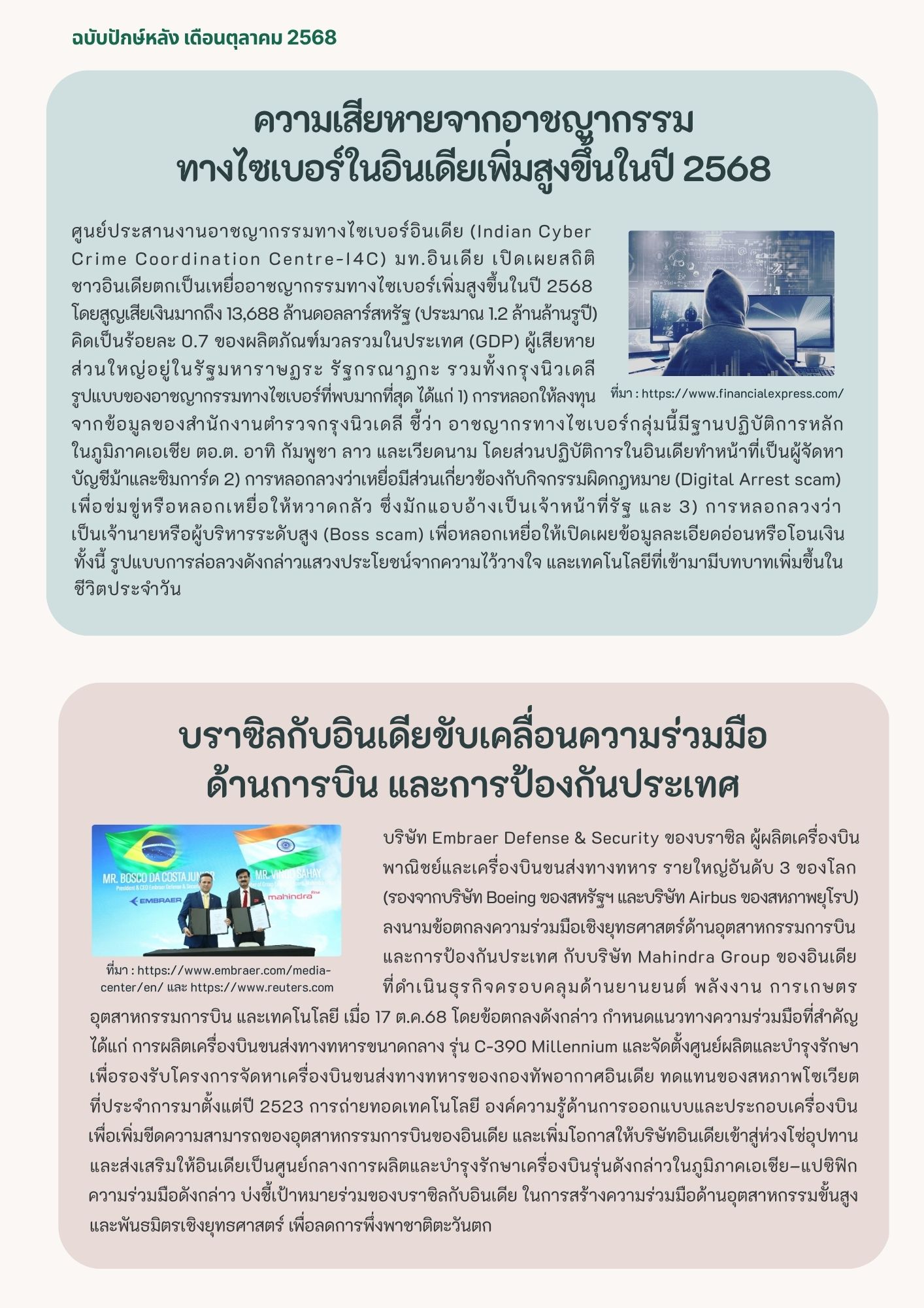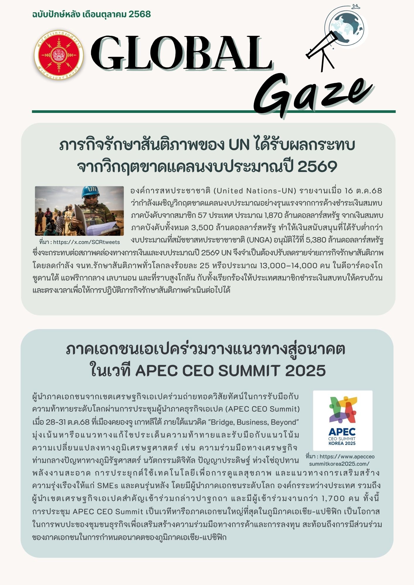 Category: Global GazeBy The Intelligence Team30 October 2025 Share this post Share on FacebookShare on Facebook Share on XShare on X Pin itShare on Pinterest Share on LinkedInShare on LinkedIn Author: The Intelligence Team Post navigationPreviousPrevious post:ฟิลิปปินส์ตั้งเป้าหมายให้ประธานาธิบดีจีนเข้าร่วมการประชุมสุดยอดอาเซียนปี 2569NextNext post:แคนาดาเผยกลุ่มแฮ็กเกอร์โจมตีระบบโครงสร้างพื้นฐานสำคัญRelated postsGlobal Gaze ปักษ์แรก ต.ค.6815 October 2025Global Gaze ปักษ์หลัง ก.ย.6830 September 2025Global Gaze ปักษ์แรก ก.ย.6815 September 2025Global Gaze ปักษ์หลัง ส.ค.6831 August 2025Global Gaze ปักษ์แรก ส.ค.6815 August 2025Global Gaze ปักษ์หลัง ก.ค.6830 July 2025