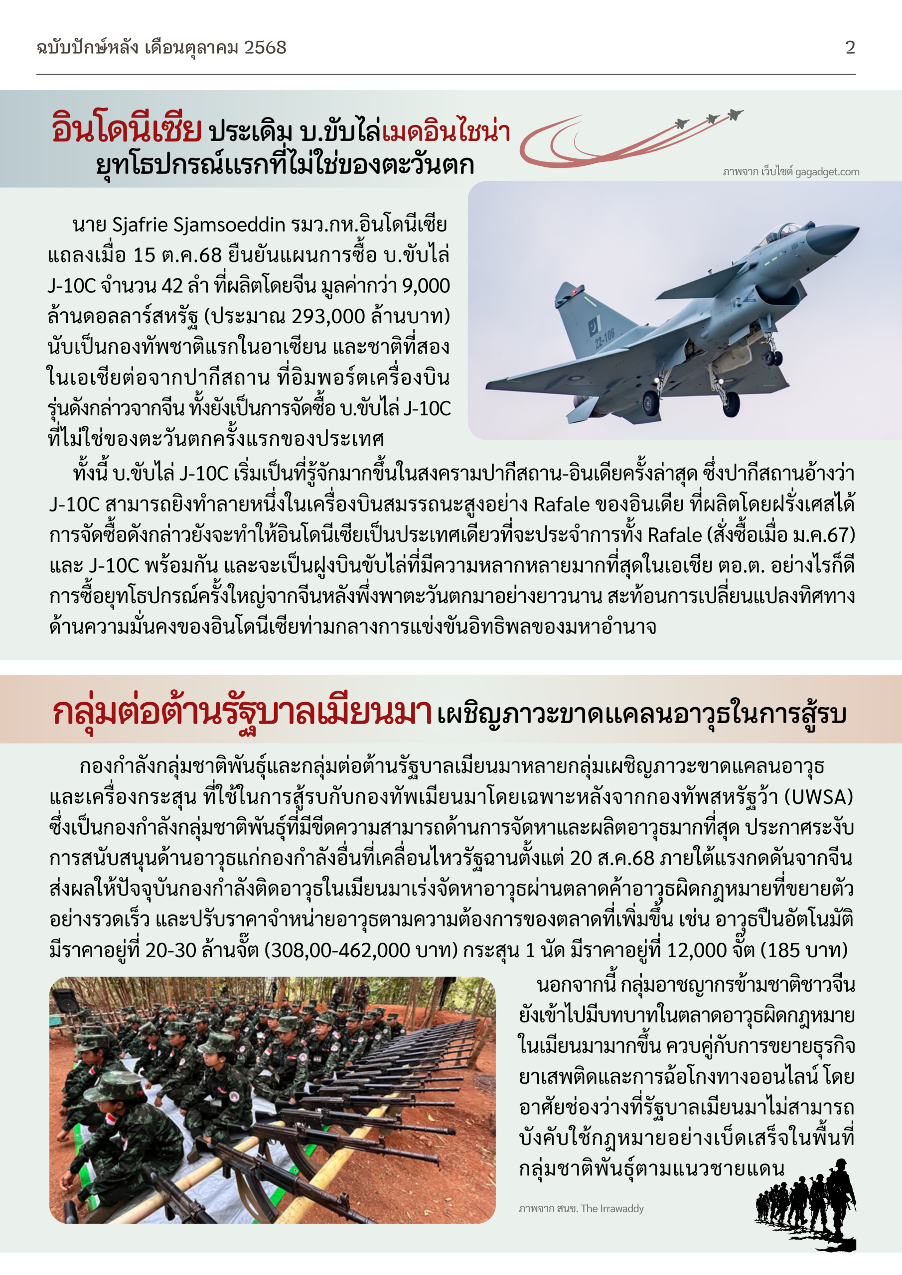 Category: รอบรั้วอาคเนย์By The Intelligence Team31 October 2025 Share this post Share on FacebookShare on Facebook Share on XShare on X Pin itShare on Pinterest Share on LinkedInShare on LinkedIn Author: The Intelligence Team Post navigationPreviousPrevious post:รมว.เอเปค หารือประเด็นความร่วมมือด้านนวัตกรรมดิจิทัลและ AINextNext post:บราซิลปราบปรามกลุ่มค้ายาเสพติดในเมืองหลวงRelated postsรอบรั้วอาคเนย์ ปักษ์แรก ต.ค.6815 October 2025รอบรั้วอาคเนย์ ปักษ์หลัง ก.ย.6830 September 2025รอบรั้วอาคเนย์ ปักษ์แรก ก.ย.6815 September 2025รอบรั้วอาคเนย์ ปักษ์หลัง ส.ค.6831 August 2025รอบรั้วอาคเนย์ ปักษ์แรก ส.ค.6815 August 2025รอบรั้วอาคเนย์ ปักษ์หลัง ก.ค.6831 July 2025