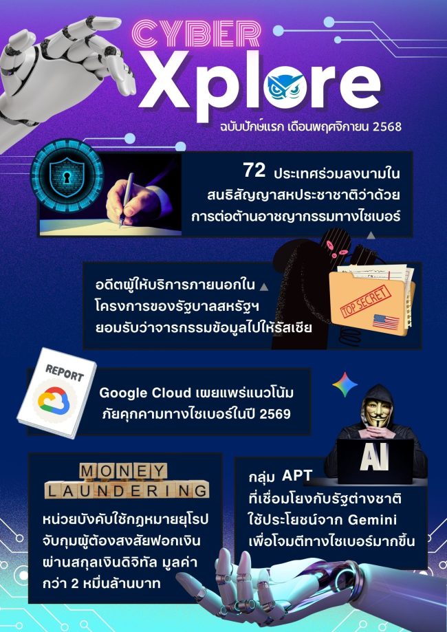 CyberXplore ฉบับปักษ์แรกเดือนพฤศจิกายน 2568 รายงานสถานการณ์ความมั่นคงปลอดภัยไซเบอร์จากทั่วโลก สรุปเหตุการณ์สำคัญและแนวโน้มภัยคุกคามในรอบ 15 วัน