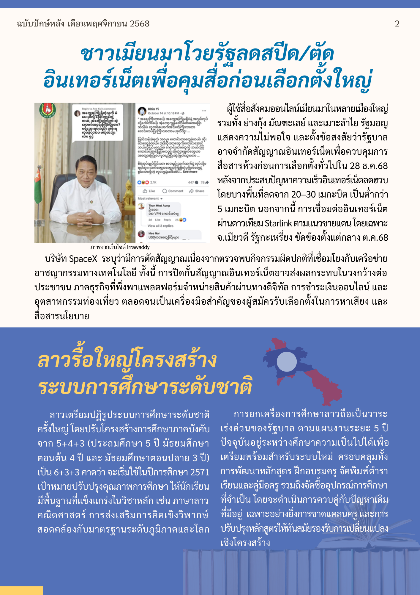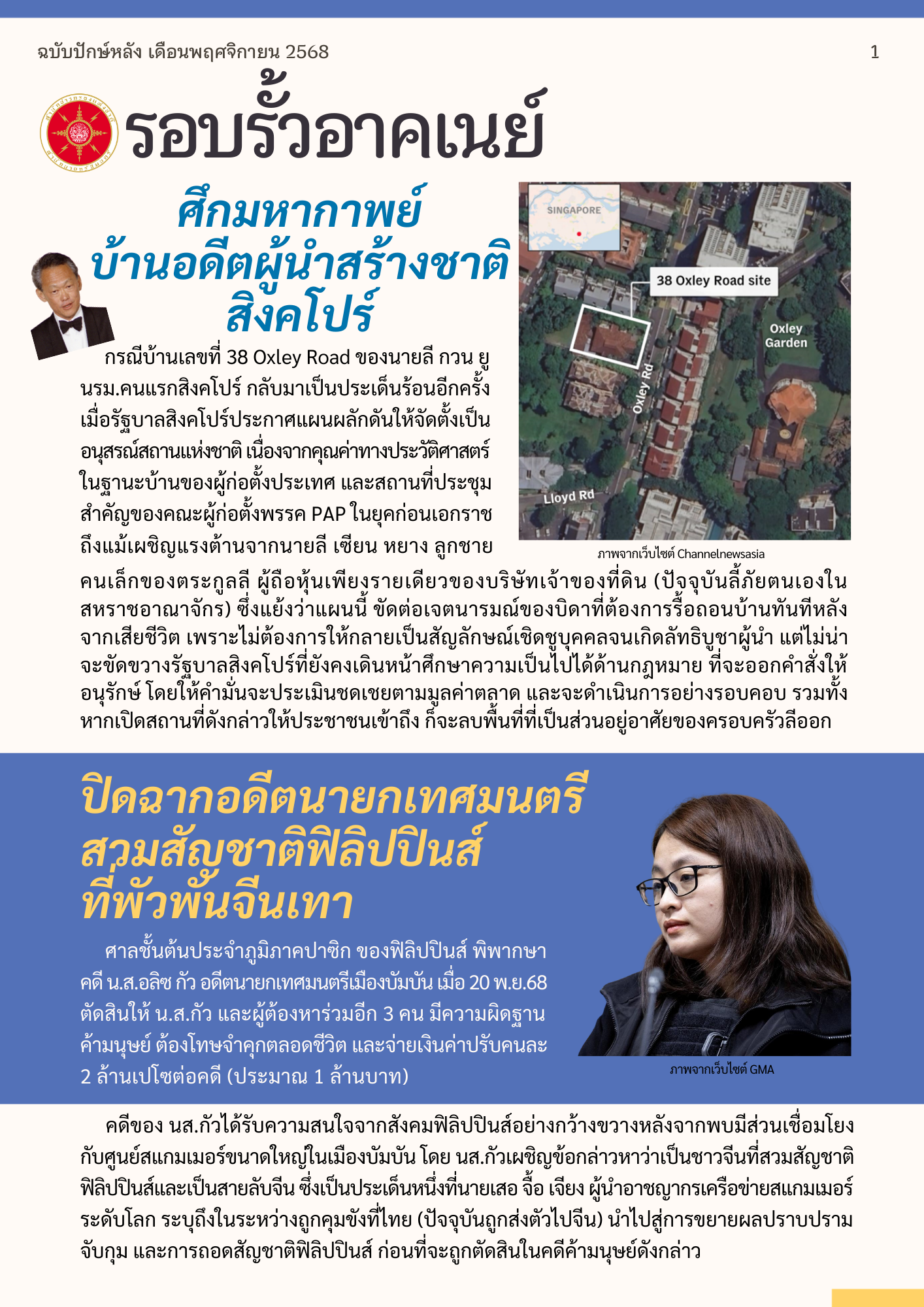Category: รอบรั้วอาคเนย์By The Intelligence Team1 December 2025 Share this post Share on FacebookShare on Facebook Share on XShare on X Pin itShare on Pinterest Share on LinkedInShare on LinkedIn Author: The Intelligence Team Post navigationPreviousPrevious post:อุทกภัยในอินโดนีเซีย มีผู้เสียชีวิตมากกว่า 400 รายNextNext post:Global Gaze ปักษ์หลัง พ.ย.68Related postsรอบรั้วอาคเนย์ ปักษ์แรก พ.ย.6815 November 2025รอบรั้วอาคเนย์ ปักษ์หลัง ต.ค.6831 October 2025รอบรั้วอาคเนย์ ปักษ์แรก ต.ค.6815 October 2025รอบรั้วอาคเนย์ ปักษ์หลัง ก.ย.6830 September 2025รอบรั้วอาคเนย์ ปักษ์แรก ก.ย.6815 September 2025รอบรั้วอาคเนย์ ปักษ์หลัง ส.ค.6831 August 2025