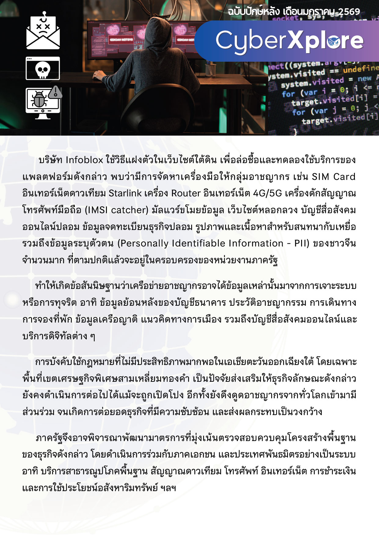 Category: CyberXploreBy The Intelligence Team1 February 2026 Share this post Share on FacebookShare on Facebook Share on XShare on X Pin itShare on Pinterest Share on LinkedInShare on LinkedIn Author: The Intelligence Team https://intsharing.co/ Post navigationPreviousPrevious post:อิหร่านพร้อมเจรจากับสหรัฐฯ แต่ยืนยันปกป้องความมั่นคงของประเทศNextNext post:Global Gaze ปักษ์หลัง ม.ค.69Related postsCyberXplore ปักษ์แรก ม.ค.256915 January 2026CyberXplore ปักษ์หลัง ธ.ค.256830 December 2025CyberXplore ปักษ์แรก ธ.ค.256815 December 2025CyberXplore ปักษ์หลัง พ.ย.25681 December 2025CyberXplore ปักษ์แรก พ.ย.256815 November 2025CyberXplore ปักษ์หลัง ต.ค.25681 November 2025