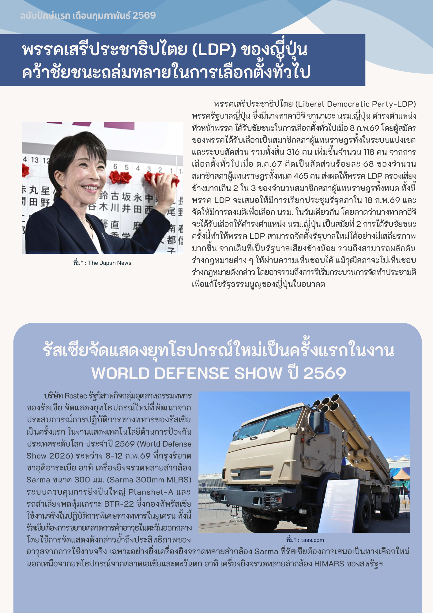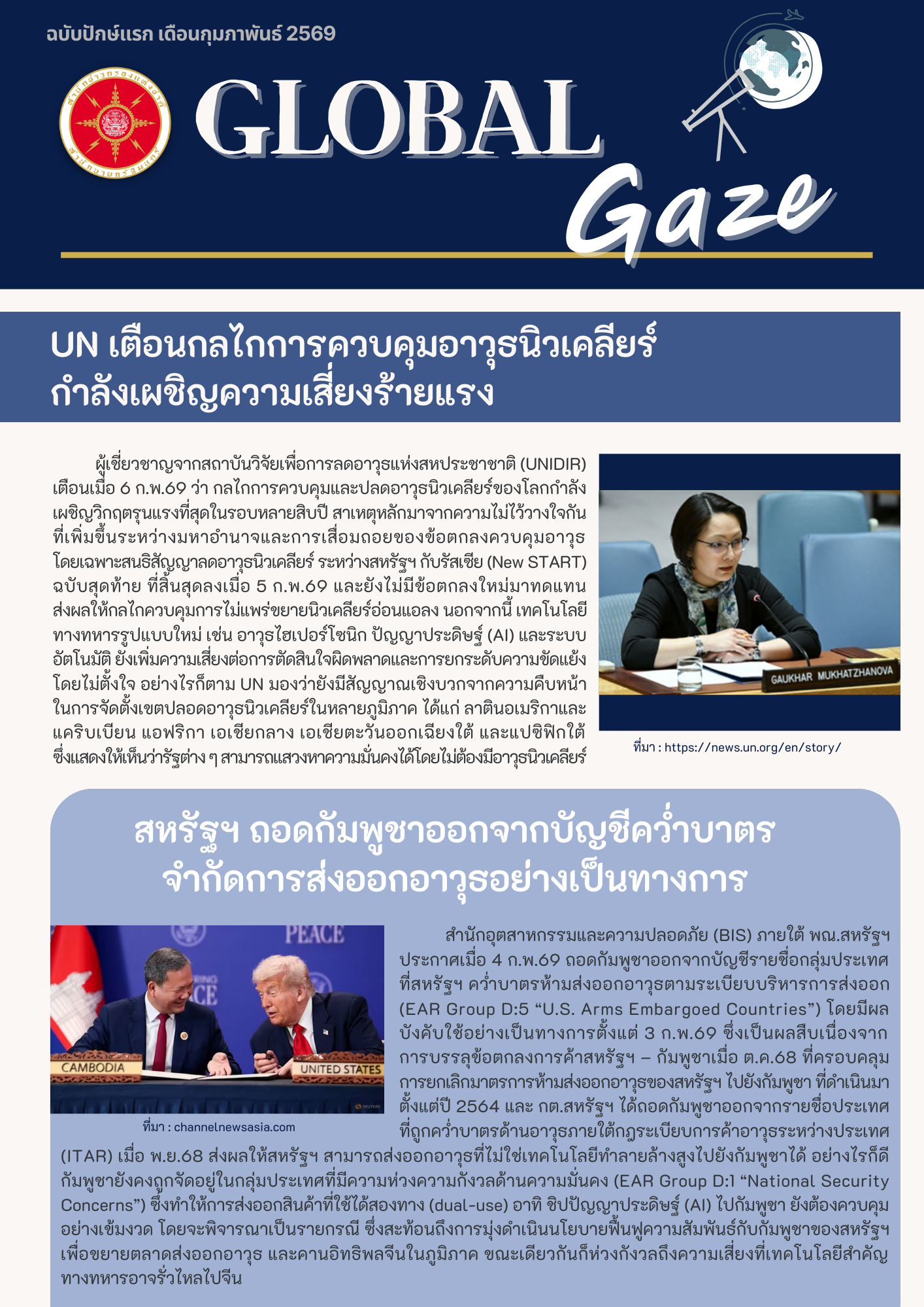 Category: Global GazeBy The Intelligence Team15 February 2026 Share this post Share on FacebookShare on Facebook Share on XShare on X Pin itShare on Pinterest Share on LinkedInShare on LinkedIn Author: The Intelligence Team Post navigationPreviousPrevious post:ผลการเลือกตั้งบังกลาเทศอย่างไม่เป็นทางการ พรรค BNP ชนะแบบถล่มทลายNextNext post:รอบรั้วอาคเนย์ ปักษ์แรก ก.พ.69Related postsGlobal Gaze ปักษ์หลัง ม.ค.691 February 2026Global Gaze ปักษ์แรก ม.ค.6915 January 2026Global Gaze ปักษ์หลัง ธ.ค.6831 December 2025Global Gaze ปักษ์แรก ธ.ค.6815 December 2025Global Gaze ปักษ์หลัง พ.ย.681 December 2025Global Gaze ปักษ์แรก พ.ย.6815 November 2025