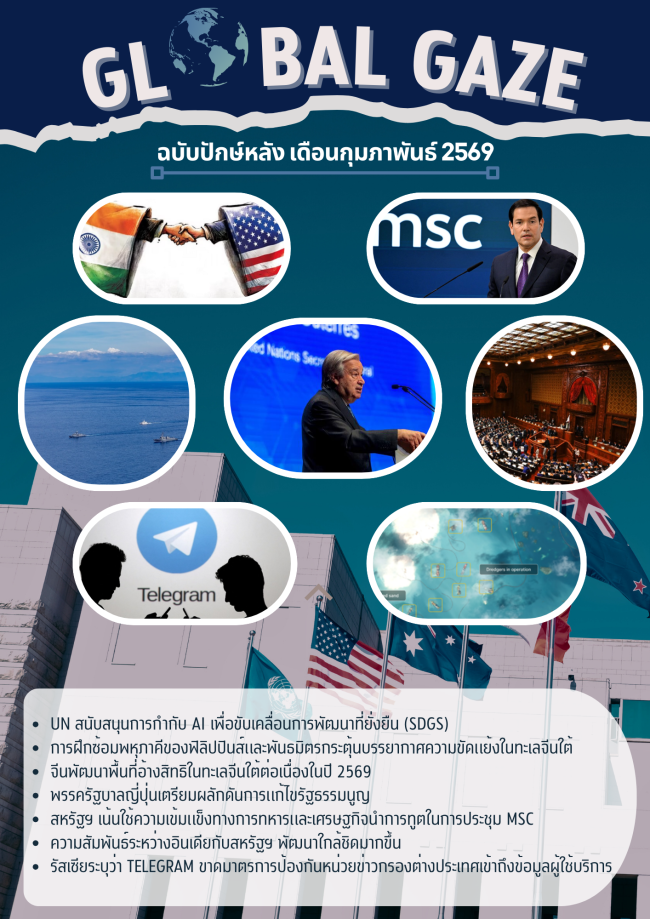 นายคิม จองอึน ผู้นำสูงสุดของเกาหลีเหนือย้ำความสำคัญของการครอบครองและพัฒนาอาวุธนิวเคลียร์ เพื่อค้ำประกันความมั่นคงของประเทศ โดยเมื่อ 26 กุมภาพันธ์ 2569 ผู้นำสูงสุดของเกาหลีเหนือกล่าวในระหว่างเข้าร่วมการประชุมของพรรคแรงงานเกาหลี (Workers’ Party of Korea-WPK) ครั้งที่ 9 และชมการแสดงพาเหรดของกองทัพเกาหลีเหนือที่กรุงเปียงยางว่า รัฐบาลเกาหลีเหนือจะให้ความสำคัญกับการพัฒนากองทัพนิวเคลียร์ และระบบขีปนาวุธต่อไป เฉพาะอย่างยิ่งขีปนาวุธที่สามารถปล่อยจากเรือดำน้ำได้ และอาวุธนิวเคลียร์ทางยุทธวิธี ซึ่งจะมีขนาดเล็กแต่มีประสิทธิภาพสูง สามารถโจมตีเป้าหมายได้แบบเฉพาะจุด ทั้งนี้ นายคิม จองอึนประกาศให้ชาวเกาหลีเหนือเชื่อมั่นว่า สถานะการเป็นประเทศที่ครอบครองและพัฒนาอาวุธนิวเคลียร์นั้นมีความสำคัญต่อความมั่นคงของชาติ ทำให้สามารถป้องปรามศัตรูและภัยคุกคามได้อย่างดี พร้อมทั้งเชิดชูบทบาทของกองทัพเกาหลีเหนือที่เป็นแกนกลางความมั่นคงของประเทศ ในการแสดงพาเหรดกองทัพเกาหลีเหนือครั้งนี้มีทหารเข้าร่วมมากกว่า 14,000 คน แต่สื่อต่างประเทศให้ความสนใจกรณีไม่มีการเปิดเผยอาวุธนิวเคลียร์หรือยุทโธปกรณ์รุ่นใหม่ ซึ่งแตกต่างจากการแสดงพาเหรดกองทัพเกาหลีเหนือที่ผ่านมา ท่าทีดังกล่าวของนายคิม จองอึน เป็นสัญญาณให้นานาชาติตระหนักถึงความมุ่งมั่นของเกาหลีเหนือที่จะครอบครองอาวุธนิวเคลียร์ ให้ความสำคัญกับอุตสาหกรรมอาวุธ และคาดว่าจะพัฒนาความร่วมมือกับประเทศที่สนับสนุนเกาหลีเหนือต่อไป โดยเฉพาะรัสเซียและจีน นอกจากนี้ ผู้นำสูงสุดของเกาหลีเหนือยังแสดงท่าทีต่อนโยบายต่างประเทศที่สำคัญ ได้แก่ เกาหลีเหนือจะไม่เจรจากับเกาหลีใต้เพื่อรวมชาติ ส่วนการเจรจากับผู้นำสหรัฐฯ อาจเกิดขึ้นได้ต่อเมื่อสหรัฐฯ ยุติการดำเนินนโยบายที่เป็นภัยคุกคามหรือข่มขู่เกาหลีเหนือ อย่างไรก็ตาม ปัจจุบัน นายคิม จองอึนยังไม่มีเหตุผลที่จะต้องเจรจากับสหรัฐฯ ด้านโฆษกทำเนียบประธานาธิบดีเกาหลีใต้ให้ความเห็นต่อท่าทีของเกาหลีเหนือว่าเกาหลีใต้ยังคงไม่เปลี่ยนแปลงนโยบายที่จะหาแนวทางอยู่ร่วมกันอย่างสันติ จึงเห็นว่าการสร้าวความเชื่อใจและเคารพระหว่างกันจะเป็นปัจจัยสู่สันติภาพในคาบสมุทรเกาหลีได้ รัฐบาลจีนแสดงท่าทีที่น่าสนใจต่อการสร้างสันติภาพในคาบสมุทรเกาหลี โดยเมื่อ 26…