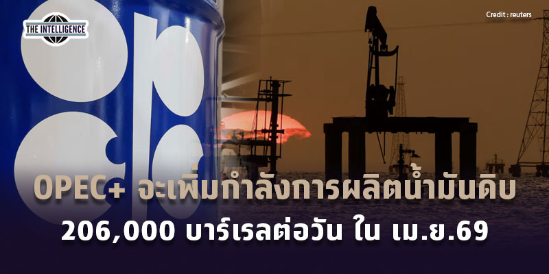 OPEC+ จะเพิ่มกำลังการผลิตน้ำมันดิบ 206,000 บาร์เรลต่อวัน ใน เม.ย.69