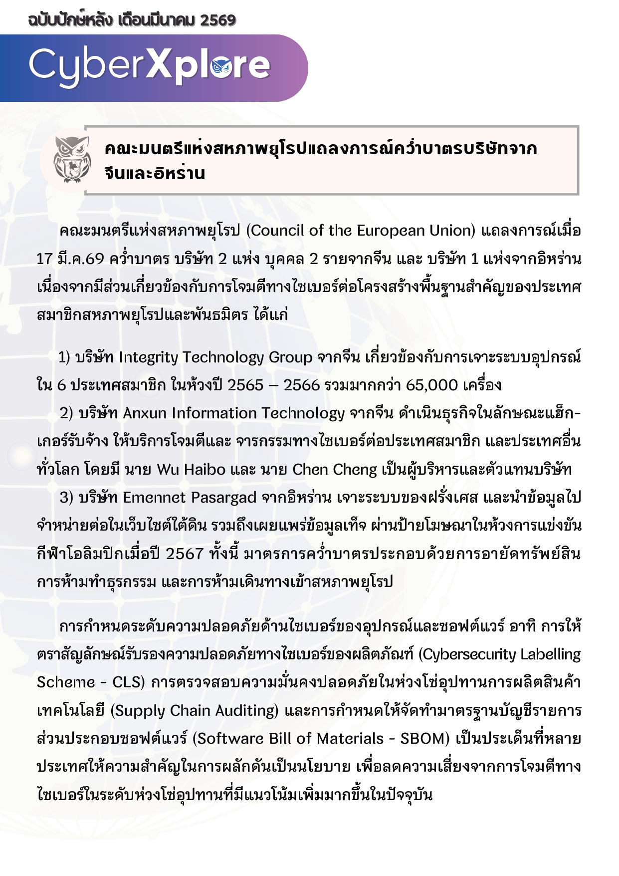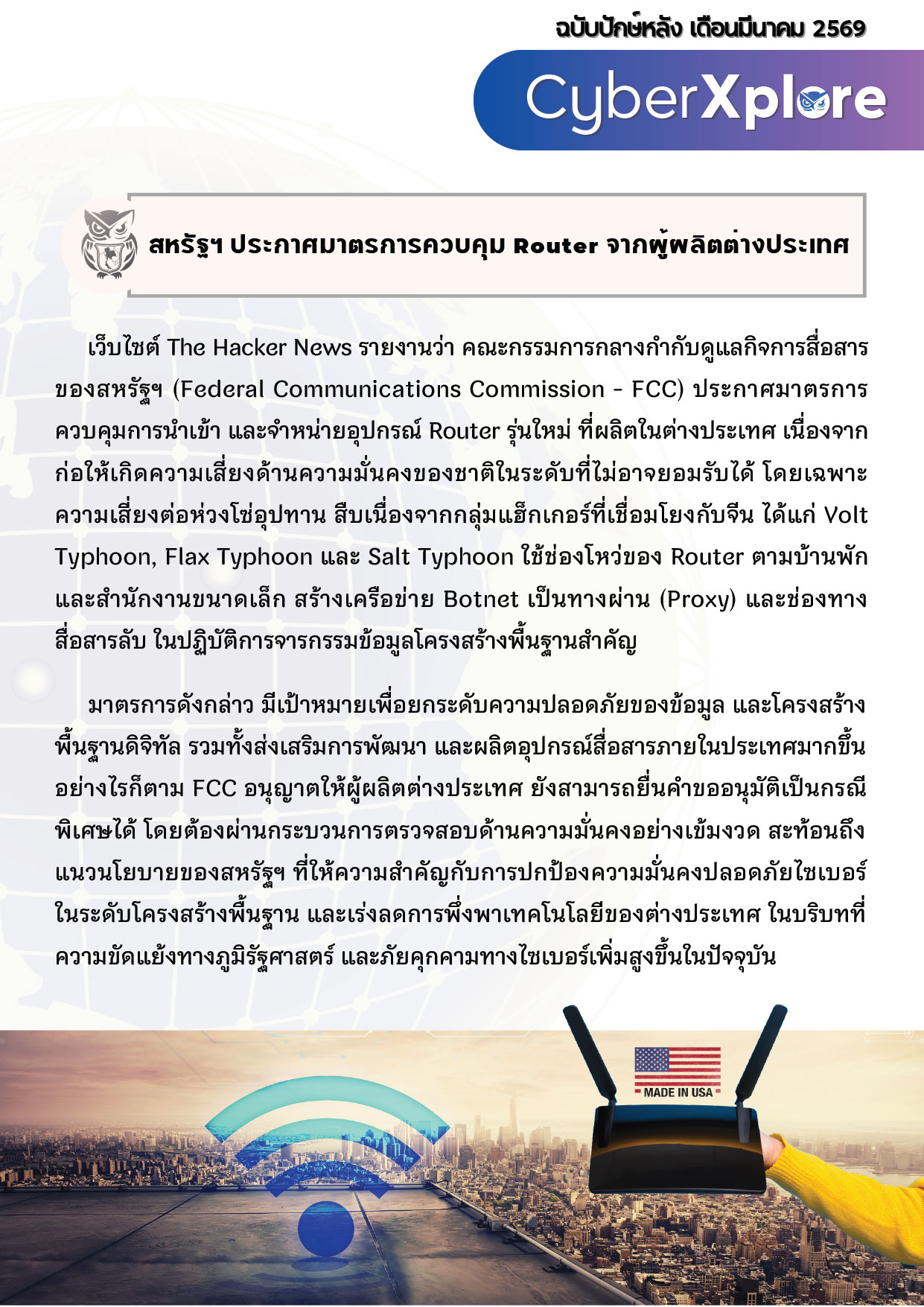 Category: CyberXplore31 March 2026 Share this post Share on FacebookShare on Facebook Share on XShare on X Pin itShare on Pinterest Share on LinkedInShare on LinkedIn Author: The Intelligence Team https://intsharing.co/ Post navigationPreviousPrevious post:พนักงานส่งสินค้าในไทยเผชิญความเสี่ยงจากการจัดตั้ง TDPARelated postsCyberXplore ปักษ์แรก มี.ค.256915 March 2026CyberXplore ปักษ์หลัง ก.พ.256928 February 2026CyberXplore ปักษ์แรก ก.พ.256915 February 2026CyberXplore ปักษ์หลัง ม.ค.25691 February 2026CyberXplore ปักษ์แรก ม.ค.256915 January 2026CyberXplore ปักษ์หลัง ธ.ค.256830 December 2025