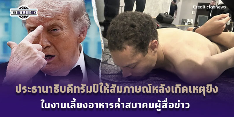 ประธานาธิบดีโดนัลด์ ทรัมป์ ให้สัมภาษณ์ที่ทำเนียบประธานาธิบดีสหรัฐฯ ภายหลังเกิดเหตุยิงในงานเลี้ยงอาหารค่ำสมาคมผู้สื่อข่าวประจำทำเนียบประธานาธิบดีสหรัฐฯ ที่โรงแรม Washington Hilton เมื่อ 25 เม.ย.69 ว่า ผู้ก่อเหตุถูกจับกุม 1 รายเป็นชายจากรัฐแคลิฟอร์เนีย ติดอาวุธปืนหลายกระบอก และ จนท.Secret Service บาดเจ็บ 1 นาย โดยทางการกำลังทำการสอบสวนสาเหตุและแรงจูงใจ รวมถึงการเข้าบุกค้นที่พักของผู้ก่อเหตุ ทั้งนี้ ทางการไม่ได้รับคำข่มขู่ก่อนการก่อเหตุ กับทั้งเชื่อว่าเป็นการก่อเหตุเพียงลำพัง (lone wolf) และไม่ได้รับการสนับสนุนจากประเทศหรือบุคคลใด นอกจากนี้ ประธานาธิบดีทรัมป์ได้เรียกร้องให้ทุกฝ่ายและกลุ่มอุดมการณ์ในสหรัฐฯ เลือกที่จะแก้ไขปัญหาด้วยสันติวิธี กับทั้งระบุไม่กังวลหากมีความพยายามลอบสังหารตนอีกในอนาคต