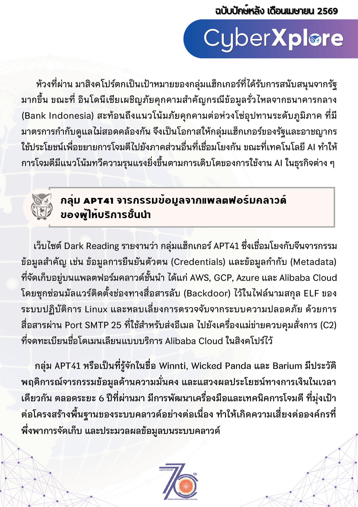 Category: CyberXplore30 April 2026 Share this post Share on FacebookShare on Facebook Share on XShare on X Pin itShare on Pinterest Share on LinkedInShare on LinkedIn Author: The Intelligence Team https://intsharing.co/ Post navigationPreviousPrevious post:รอบรั้วอาคเนย์ ปักษ์หลัง เม.ย.69Related postsCyberXplore ปักษ์แรก เม.ย.256915 April 2026CyberXplore ปักษ์หลัง มี.ค.256931 March 2026CyberXplore ปักษ์แรก มี.ค.256915 March 2026CyberXplore ปักษ์หลัง ก.พ.256928 February 2026CyberXplore ปักษ์แรก ก.พ.256915 February 2026CyberXplore ปักษ์หลัง ม.ค.25691 February 2026