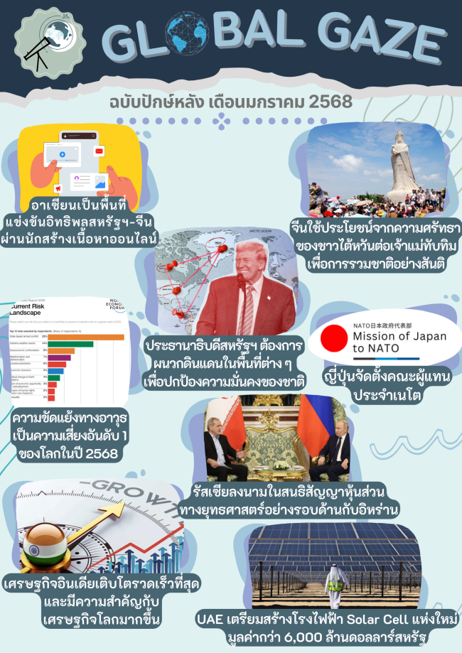 Global Gaze ปักษ์หลังเดือนมกราคม 2568 รายงานสถานการณ์และบทบาทของผู้นำที่น่าสนใจรอบโลกพร้อมประเมินแนวโน้ม