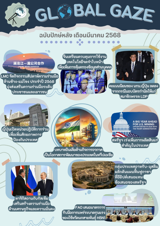 Global Gaze ปักษ์หลังเดือนมีนาคม 2568 รายงานสถานการณ์และบทบาทของผู้นำที่น่าสนใจรอบโลกพร้อมประเมินแนวโน้ม